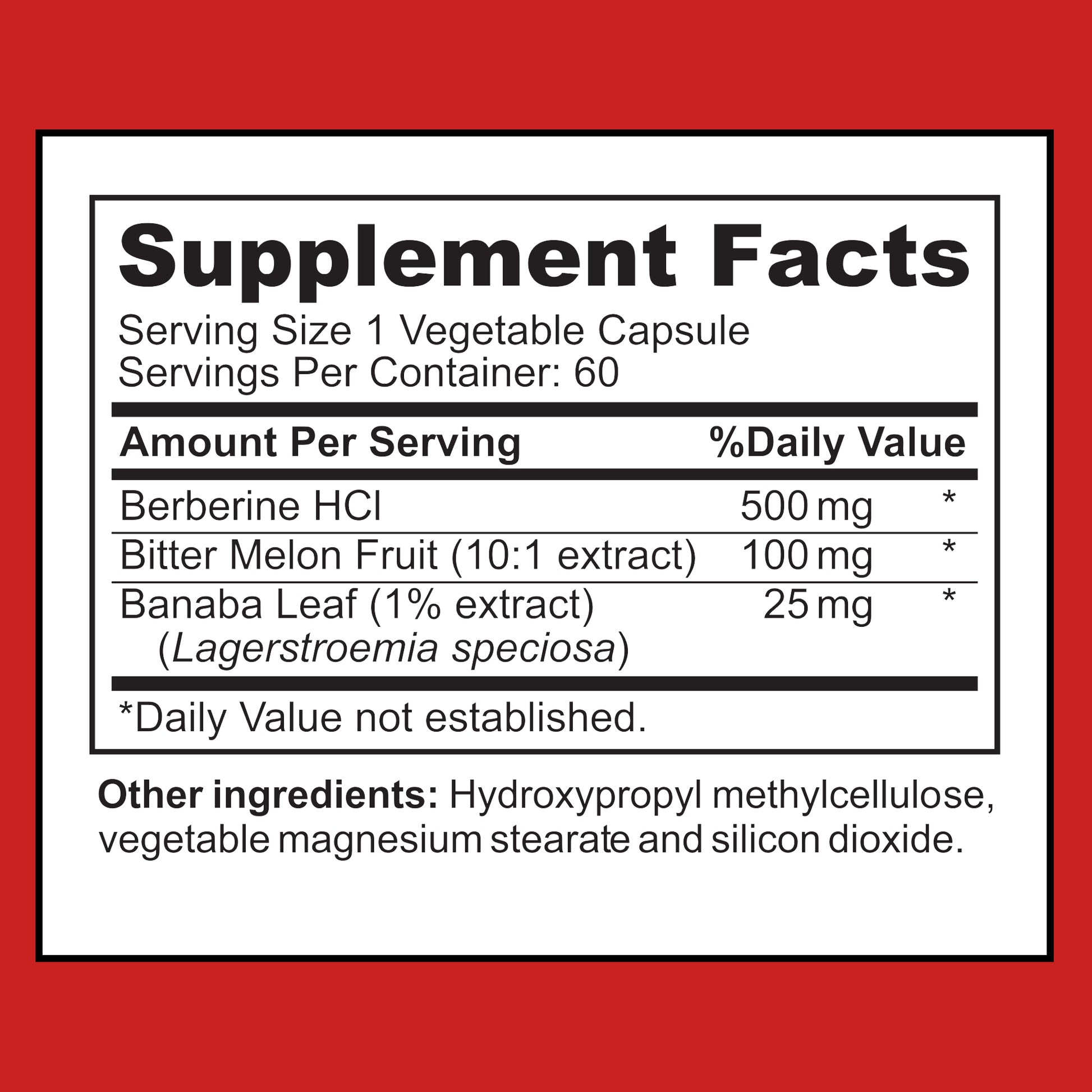 500 MG OF BERBERINE IN EVERY CAPSULE - Rejuvences berberine with bitter melon and banaba leaf supplements are made using the highest-quality ingredients. Each capsule consists of 500 mg of berberine, 100 mg of bitter melon fruit, and 25 mg of banaba leaf. Suggested use: Take 2 capsules each day or as directed by your healthcare practitioner.
