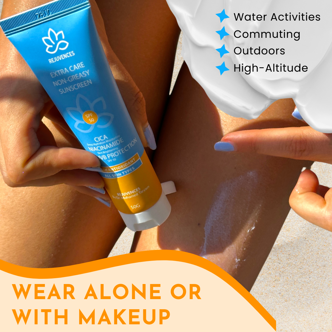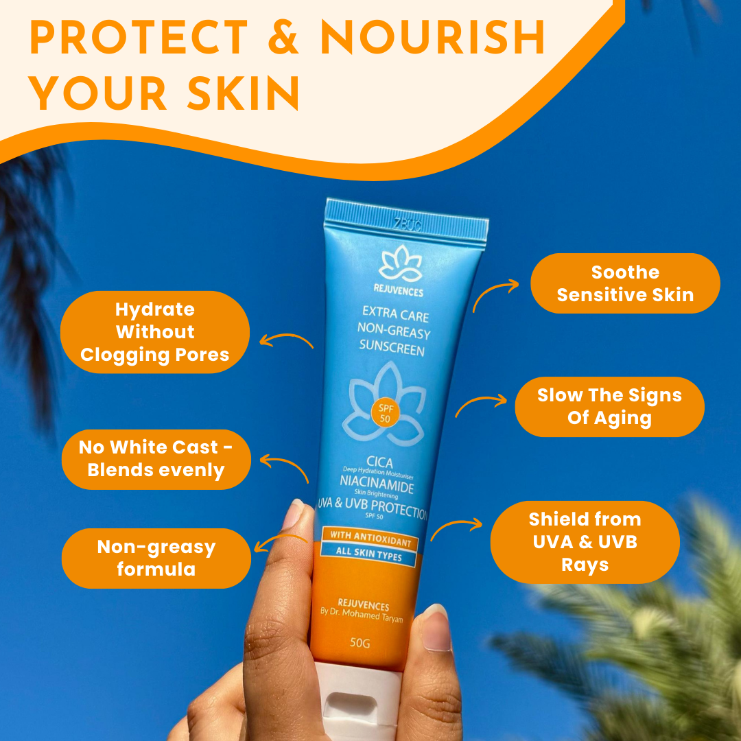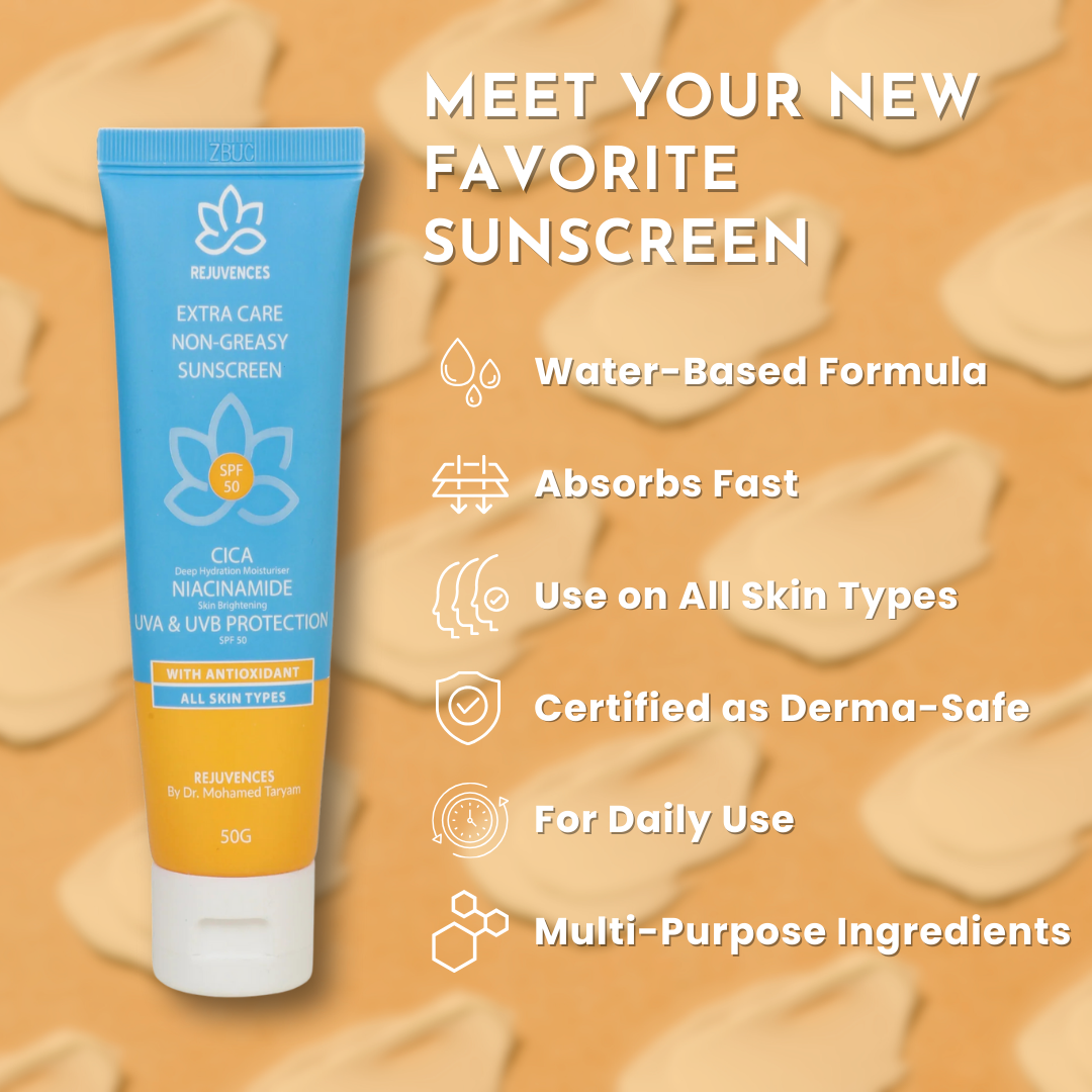 Protect your skin while nourishing it with Rejuvences Sunscreen SPF 50 – your ultimate daily defense against the sun!